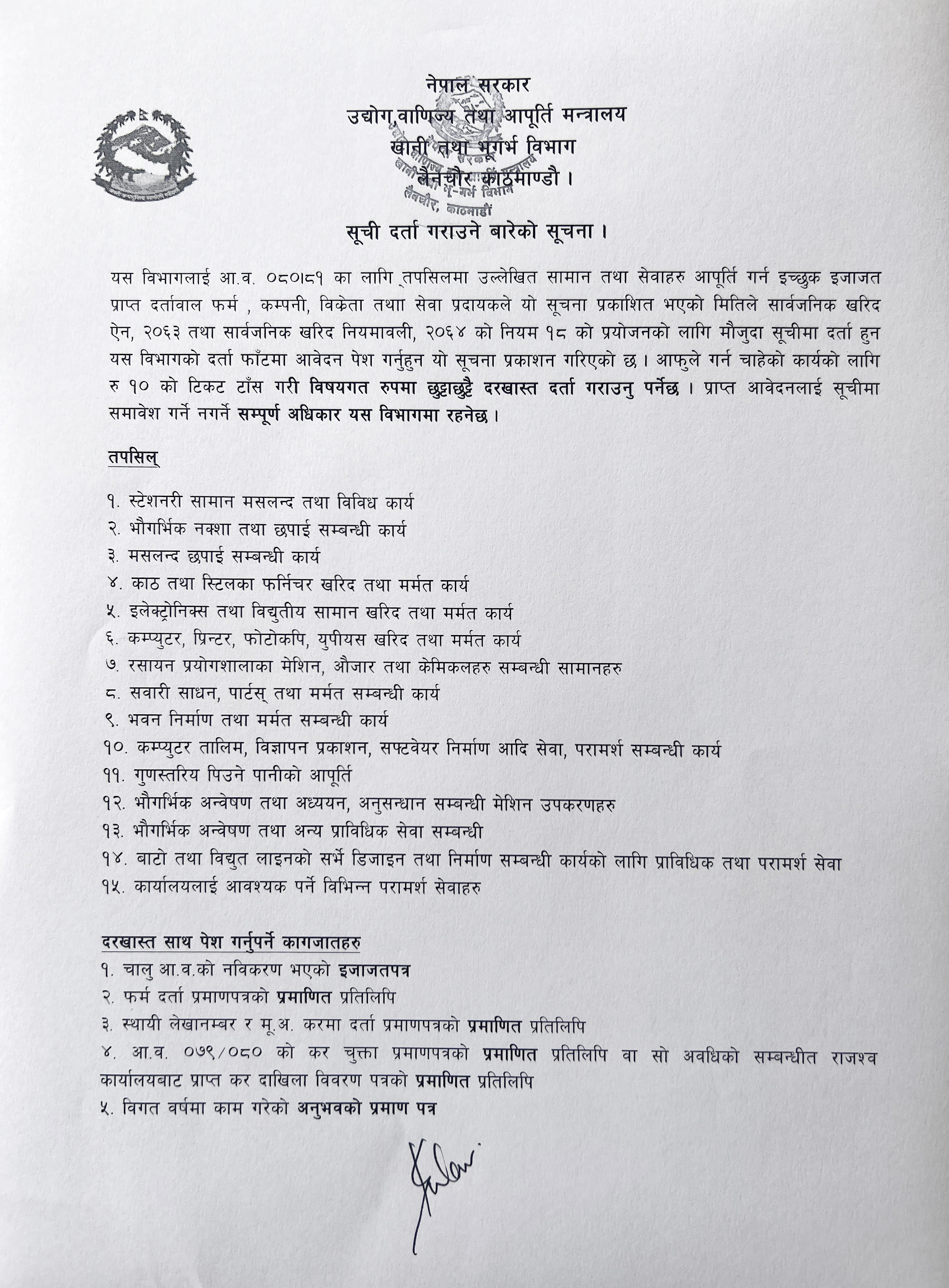Notice for vendor listing (in Nepali)