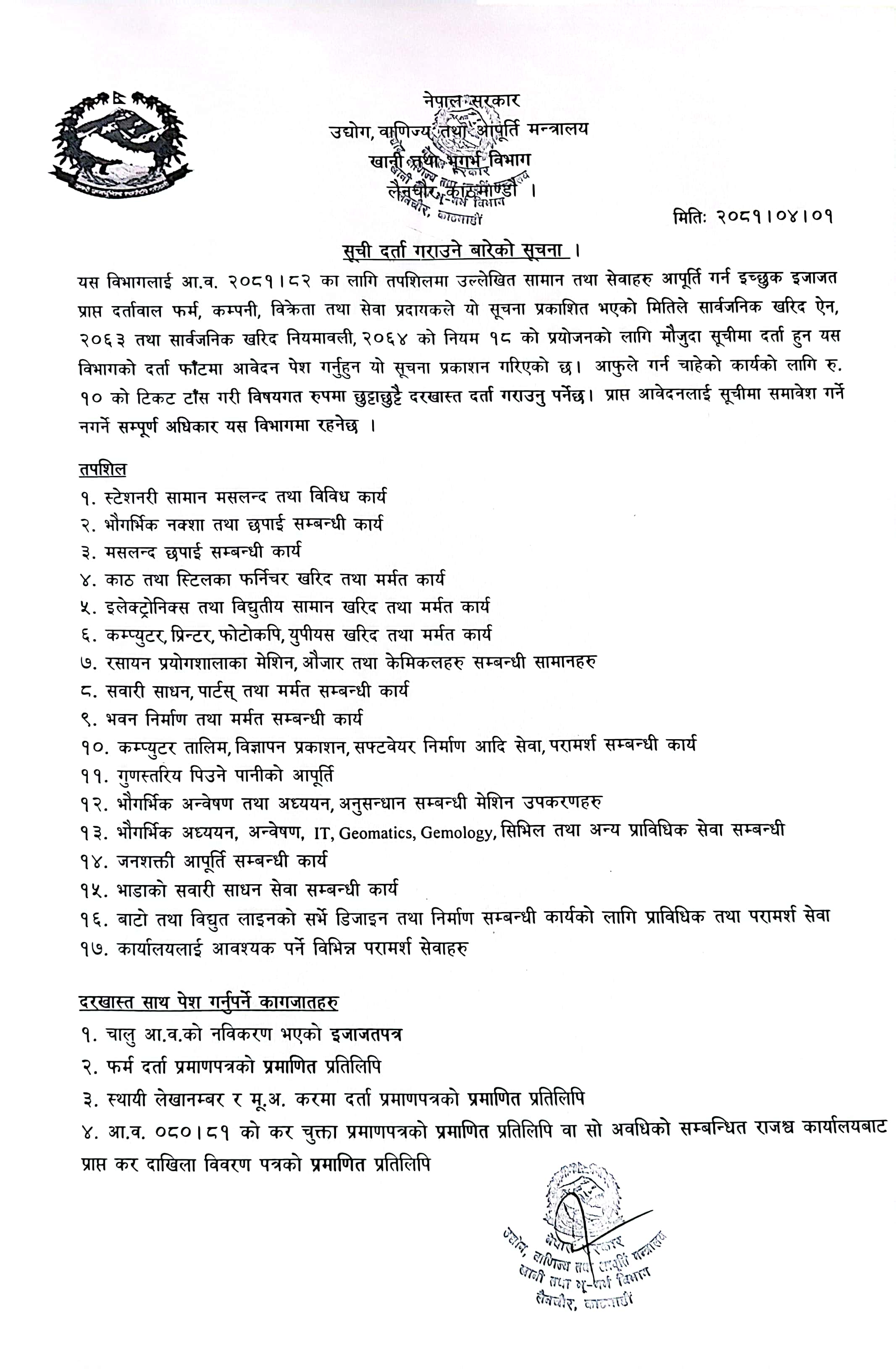 Notice for Listing for Fiscal Year 2081.82