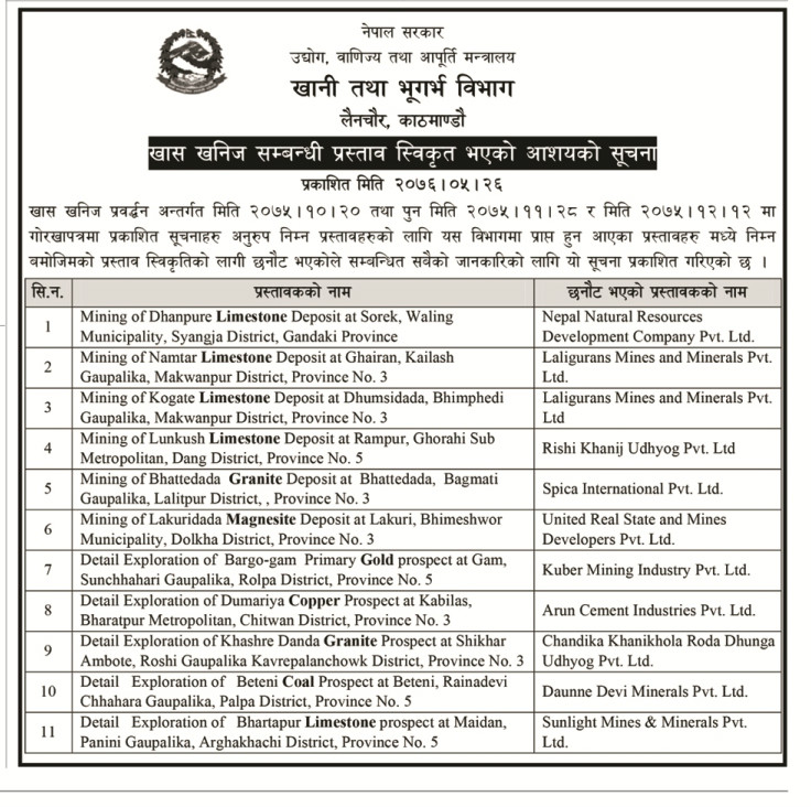 Notice: Acceptance of Proposal (Special Minerals)