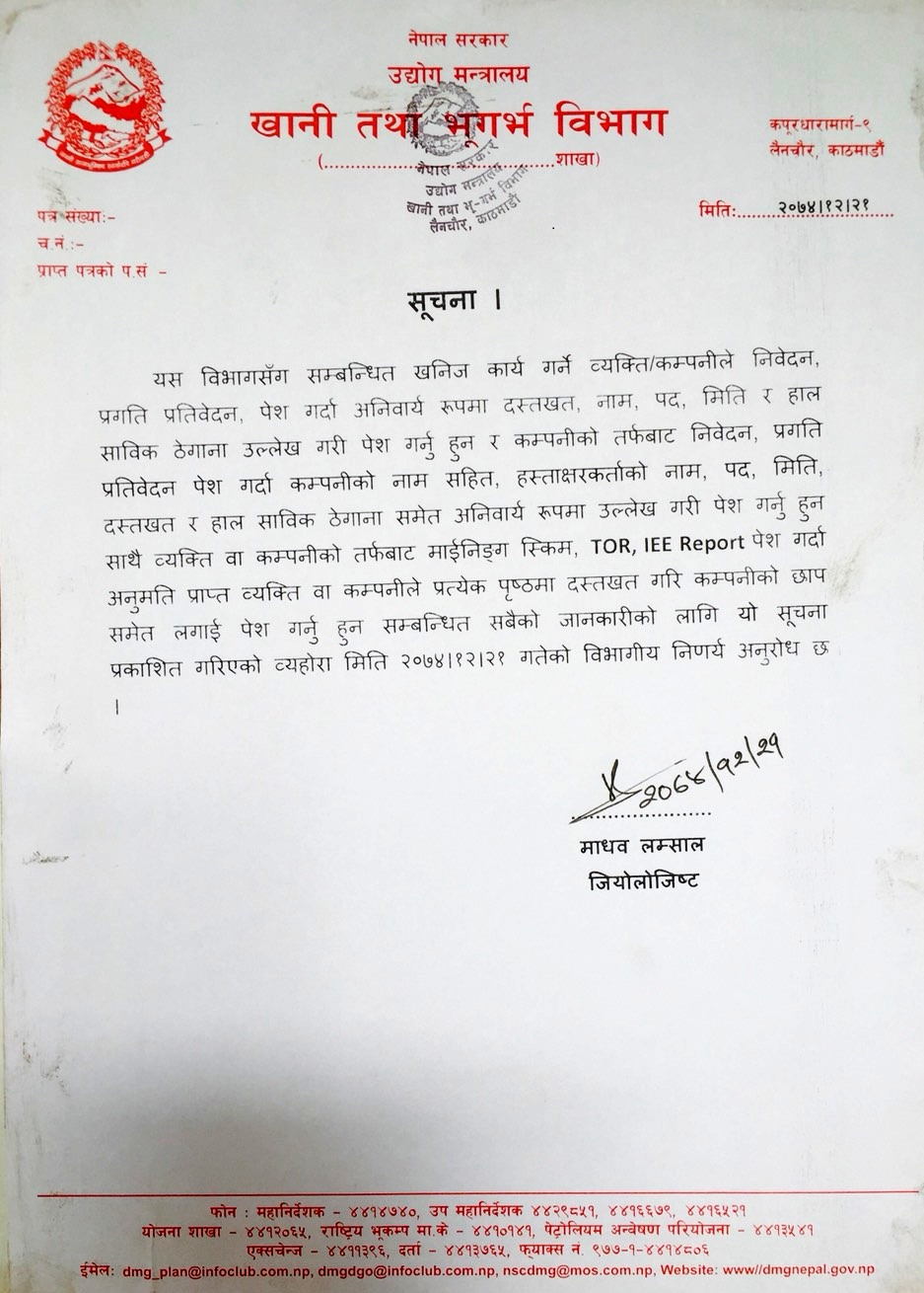 Notice of Mineral Resource Division