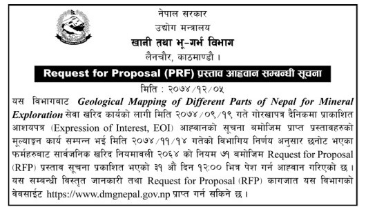 Notice: Request for Proposal (RFP) Geological Mapping and Mineral Exploration in Different Parts of Nepal